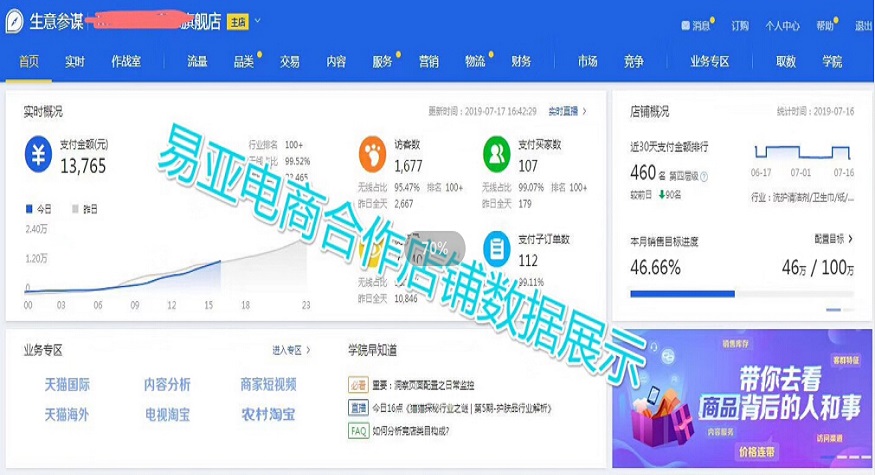 易亚电商合作三个月店铺数据展示,店铺0基础合作3个月,借势618单月完成180万➕销售额,现在日销稳定2万!天猫红利期,商家们一定把握机会,下半年爆发机会更大!